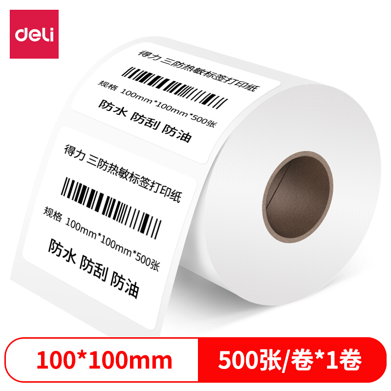 得力(deli)100*100mm三防热敏标签打印纸电子面单不干胶打印纸500张*1卷12001