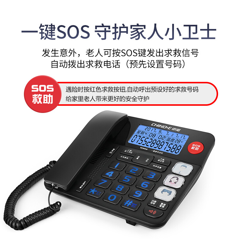 • 中诺 来电报号 电话机 座机 固定 电话 有绳 板机 老人一键SOS 大屏 一键拨号 W568黑色