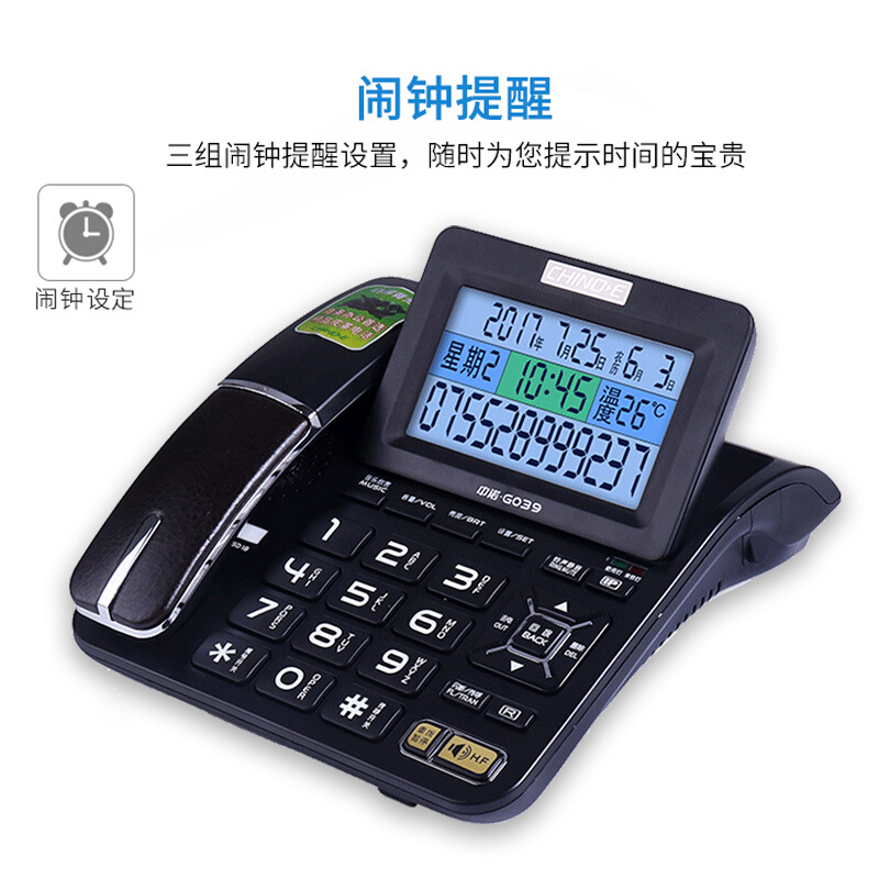 中诺(CHINO-E)G039 大屏幕来电显示电话机/家用座机/办公座机 (黑色)