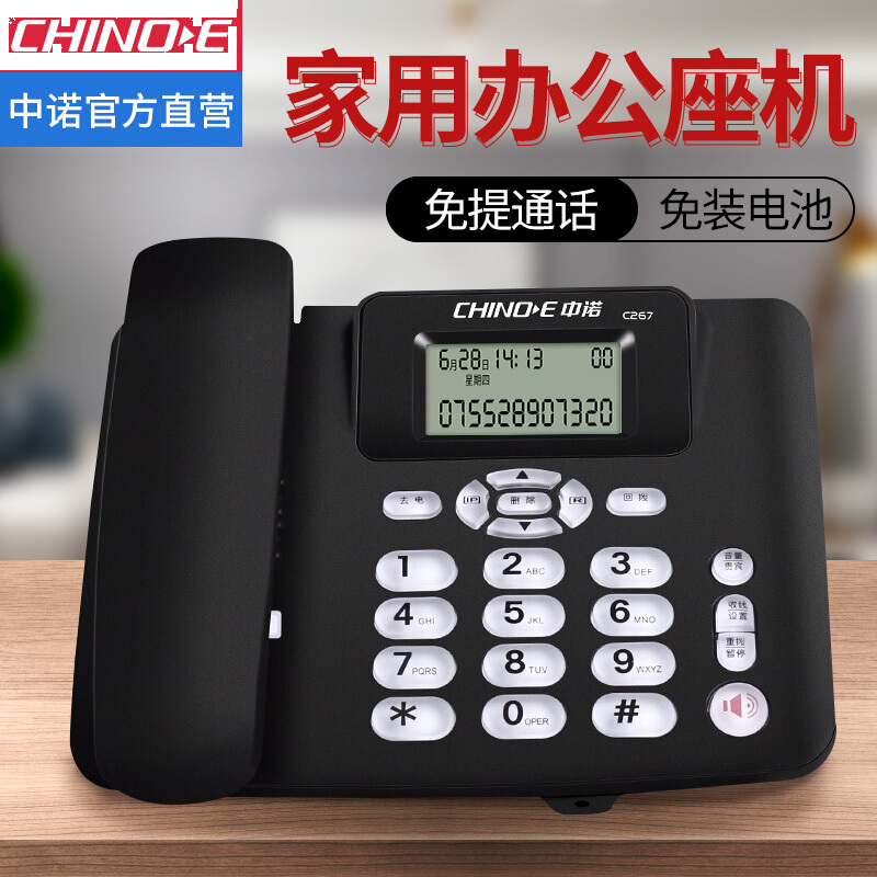 中诺(CHINO-E)C267座机电话机家用商用办公带免提通话来电显示免电池 黑色