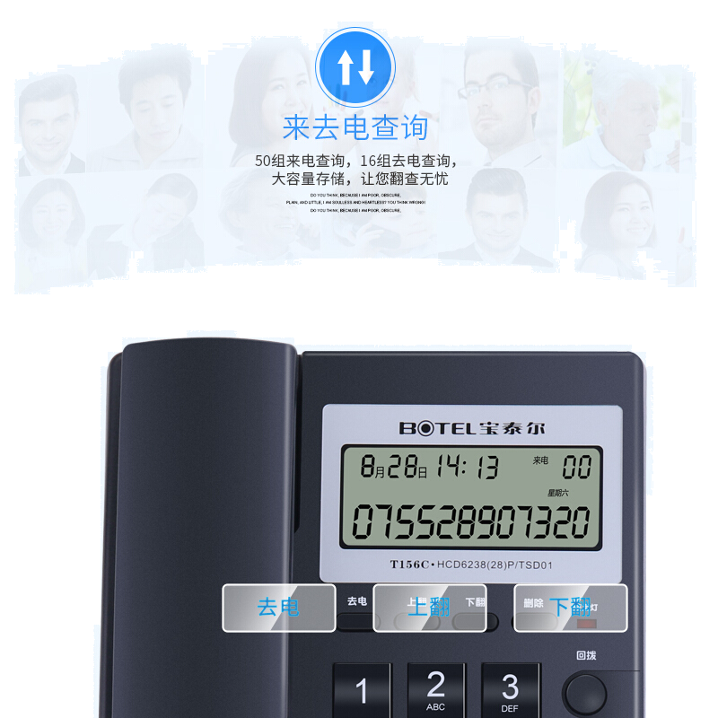 • 宝泰尔(BOTEL)电话机座机 固定电话 办公家用 可接电话交换机/桌壁两用 T156 黑色