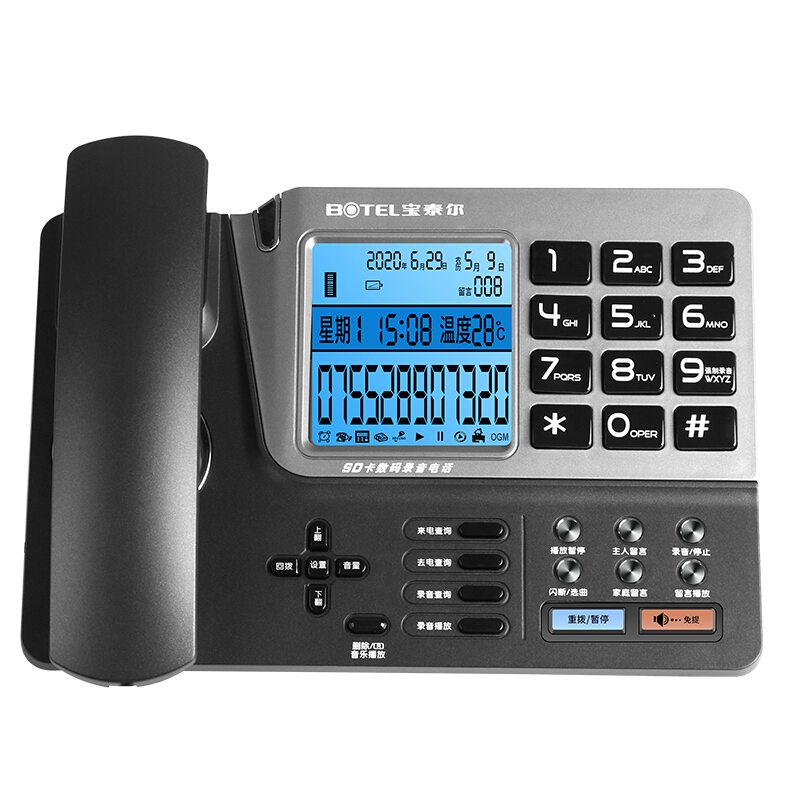 • 宝泰尔(BOTEL)电话机座机 办公家用数码自动录音电话机 MP3自选铃声/智能显屏 SA20 爵士黑