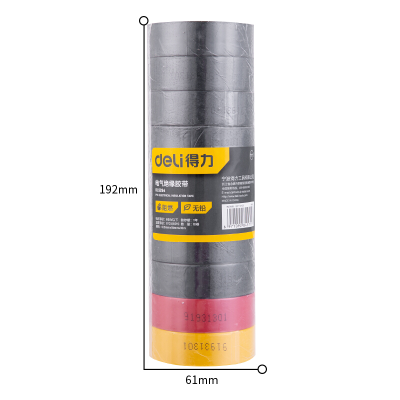 • 得力 DL5264绝缘胶带10米*10卷 三色(8黑1黄1红)