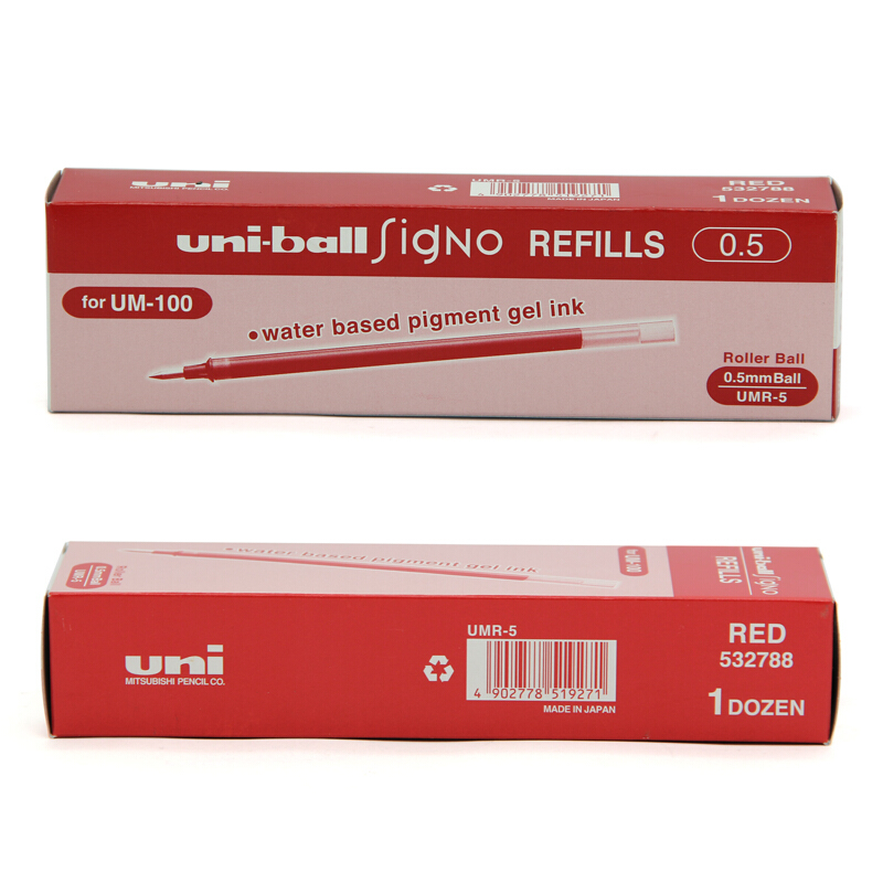 三菱UMR-5 中性笔芯(适用于UM-100笔)红色0.5mm12支装