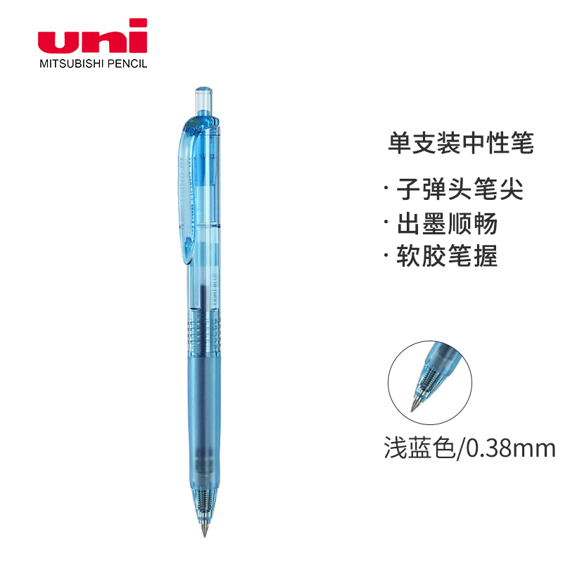 • 三菱UMN-138 彩色中性笔 0.38mm按动双珠啫喱笔财务用耐水耐光(替芯UMR-83) 浅蓝