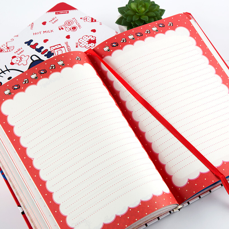 广博HelloKitty韩版卡通25K128张小学生女记事本笔记本子凯蒂猫日记本 KT81011 红色