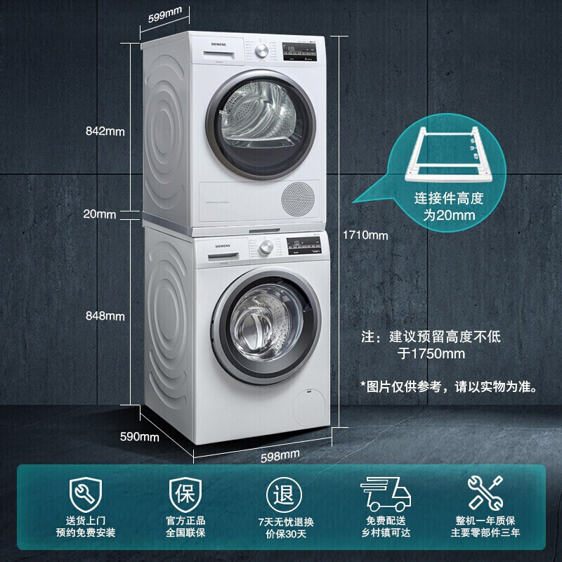 - 西门子(SIEMENS)洗烘套装 10kg除菌滚筒洗衣机+9kg 热泵烘干机家用 WM12P2602W+WT47W5601W