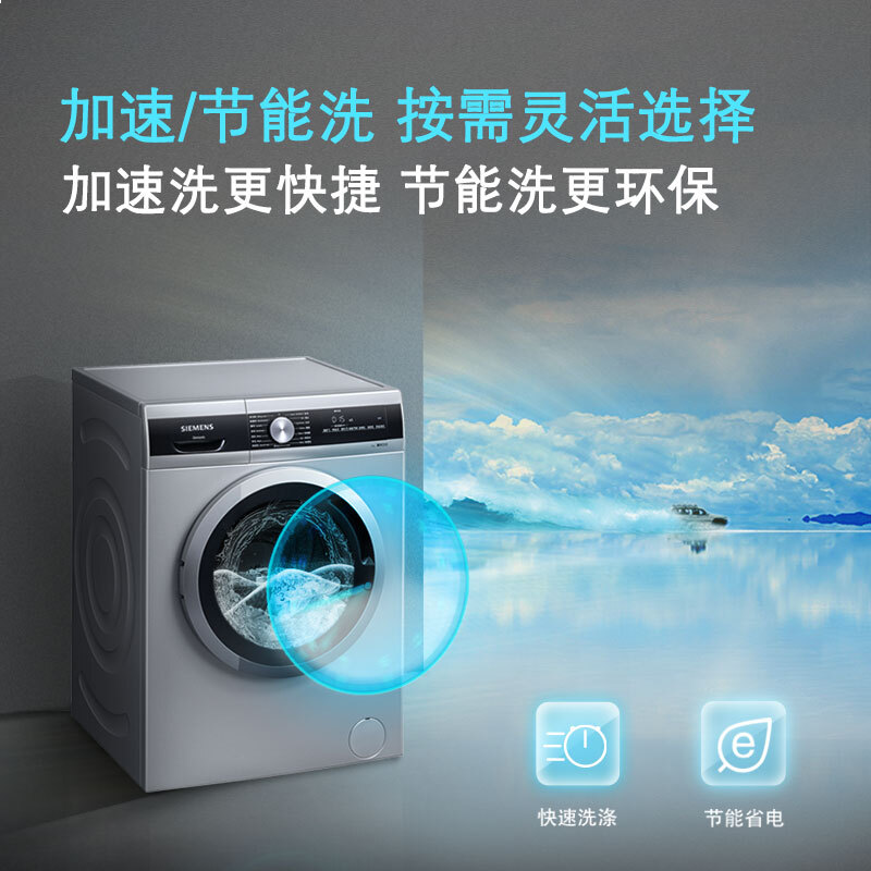 • 西门子(SIEMENS) 9公斤滚筒洗衣机全自动 BLDC变频电机 99.9%除菌 15分钟快洗 XQG90-WG42A2Z81W