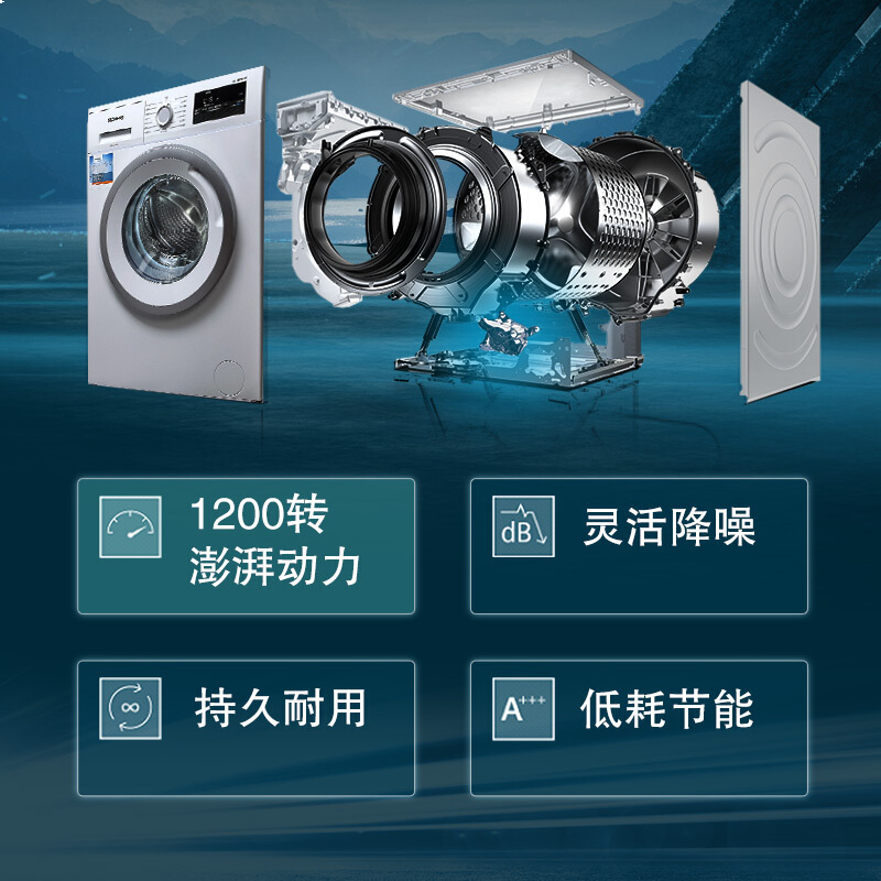 • 西门子XQG80-WM12N1600W/8公斤 变频滚筒洗衣机 除菌液 防过敏程序 快洗15‘ 高温筒清洁
