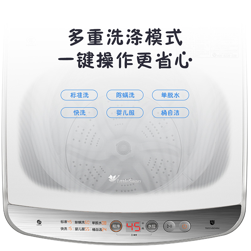 • 小天鹅(LittleSwan)迷你洗衣机全自动 3公斤波轮 京东小家 儿童婴儿宝宝内衣洗衣机小 母婴洗 TB30V80MINI
