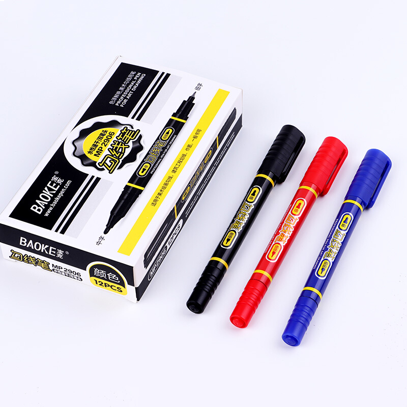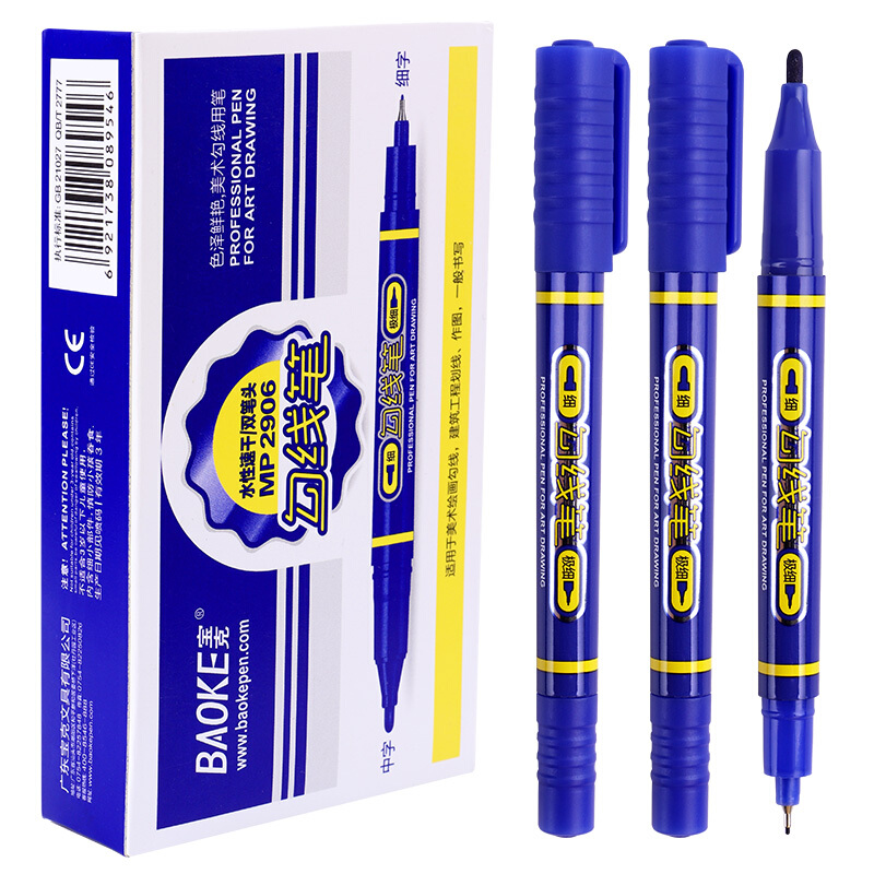• 宝克(BAOKE)MP2906 小双头水性速干勾线笔 美术绘画勾线用笔 蓝色 12支/盒