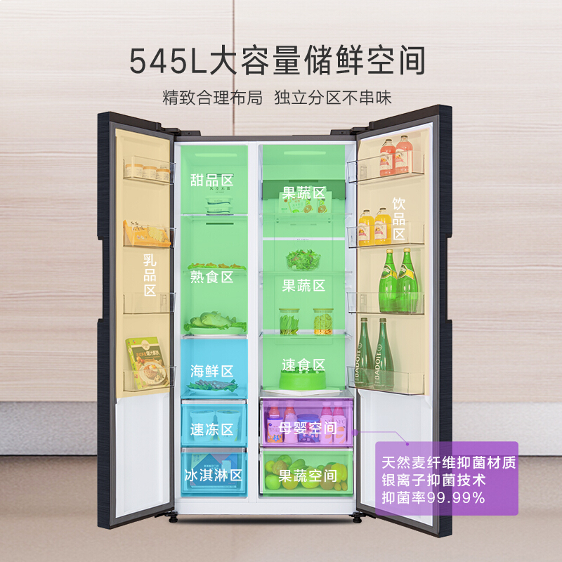 小天鹅 (LittleSwan)545升 母婴系列对开门冰箱 纤薄大容量精细分储一级能效变频风冷电冰箱BCD-545WKPZL(E)