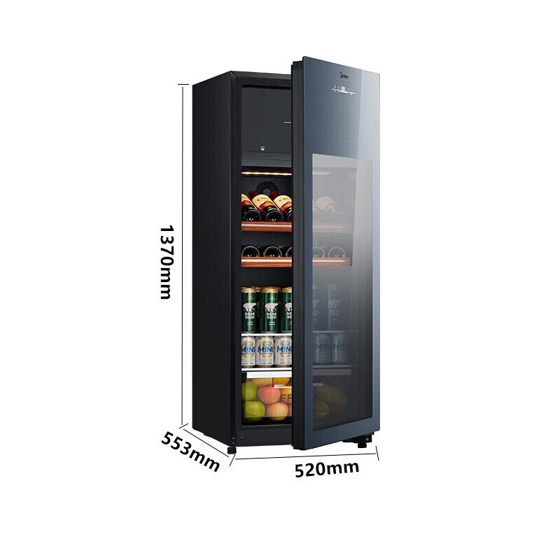 • 美的(Midea)家用冷藏柜红酒柜保鲜柜客厅立式玻璃办公室冷柜一级节能省电低音智能酒柜 JC-160GEM升级冷冻室设计(高1.37米)