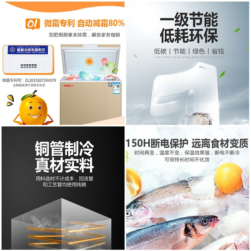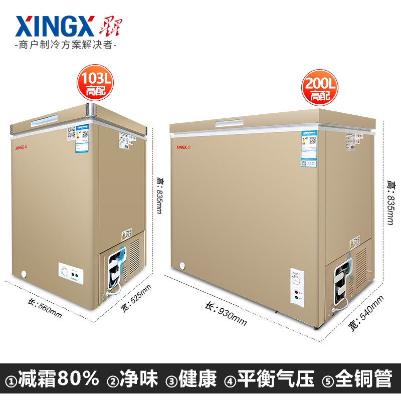• 星星BD/BC-103GC 商用单门冰柜全铜管带自动除霜 小型卧式家用冰箱单温冷冻冷藏食材冷柜 土豪金 103升(自动减霜80%全铜管制冷