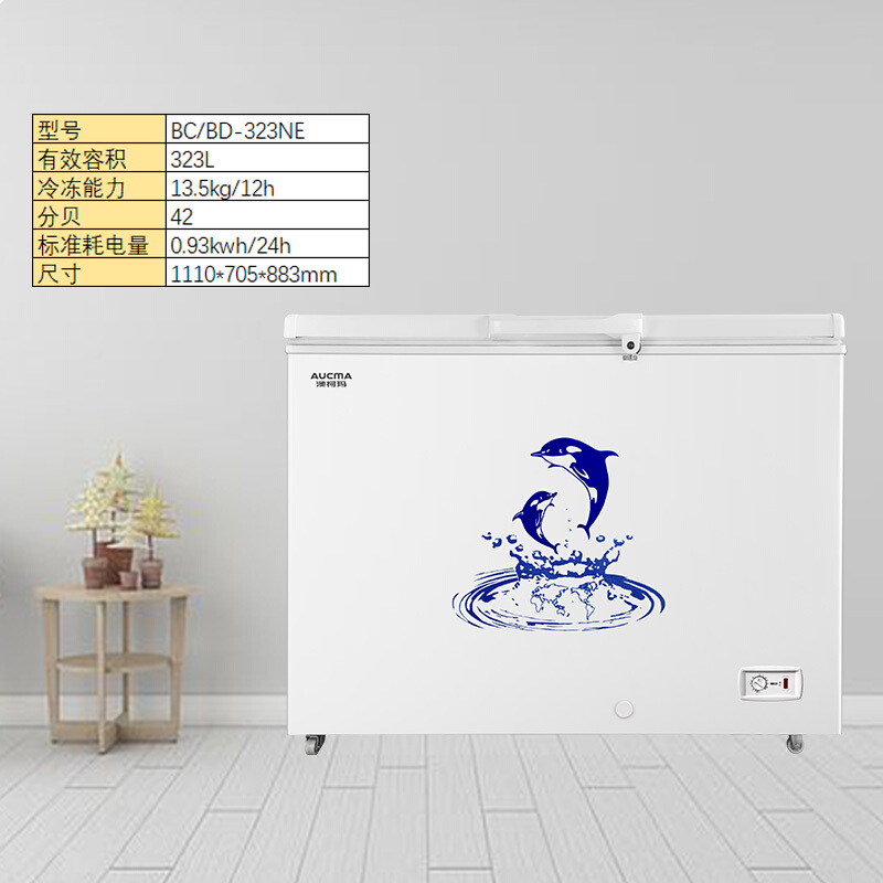 • 澳柯玛(AUCMA)323升带锁卧式家用商用大容量冰柜 冷藏冷冻转换冷柜 单箱变温顶开冰箱 BC/BD-323NE