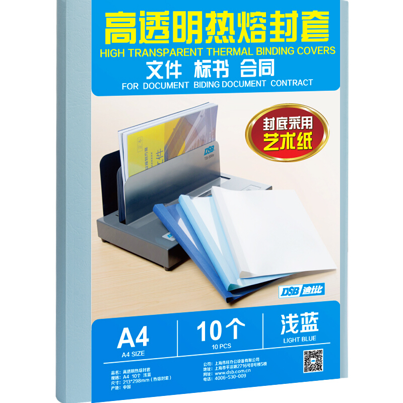 DSB 高透明热熔封套 A4 浅蓝 18mm背宽(装订180页)10个装 艺术纸封皮胶装封面