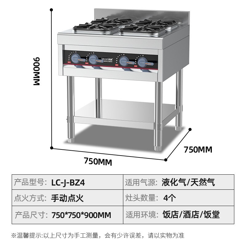 • 乐创(Lecon)商用煲仔炉四头燃气 天然/液化气 酒店厨房企业工程款 LC-J-BZ4