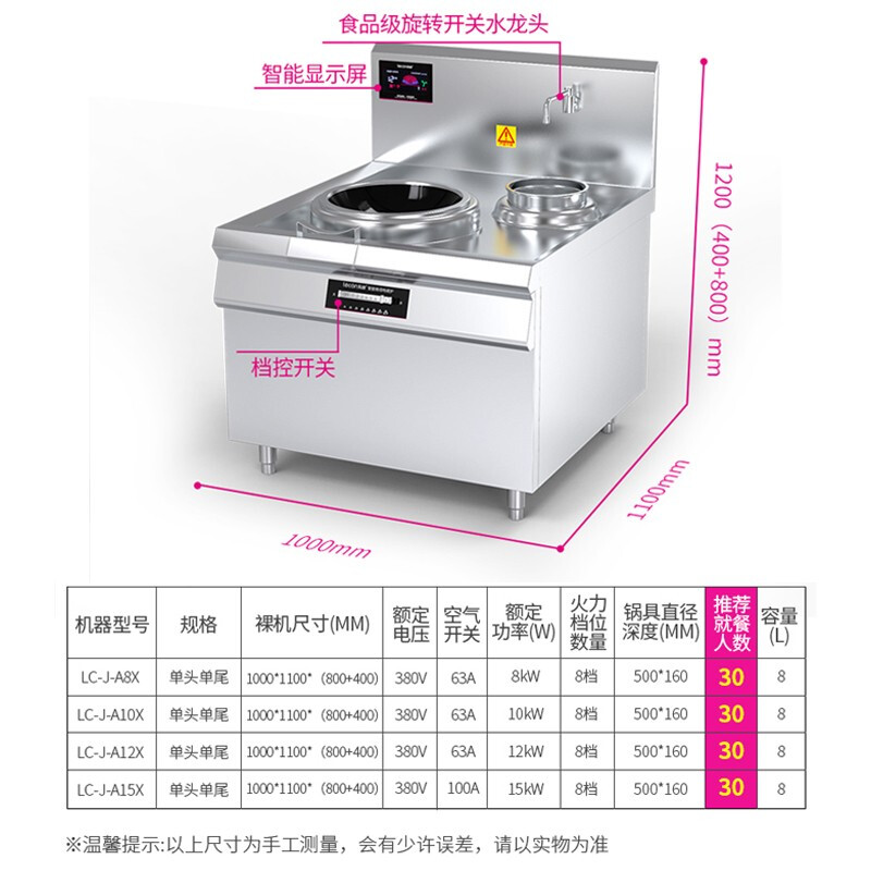 • 乐创(lecon)商用电磁单头单尾小炒灶 15KW大功率 380V LC-J-A15X