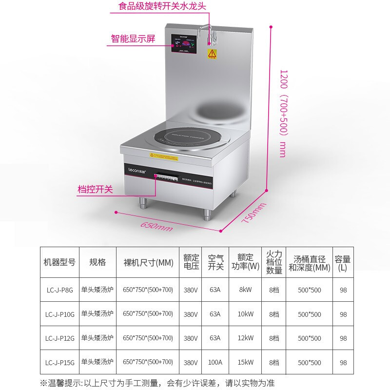• 乐创(lecon)商用电磁单头矮汤灶 15KW大功率 380V LC-J-P15G