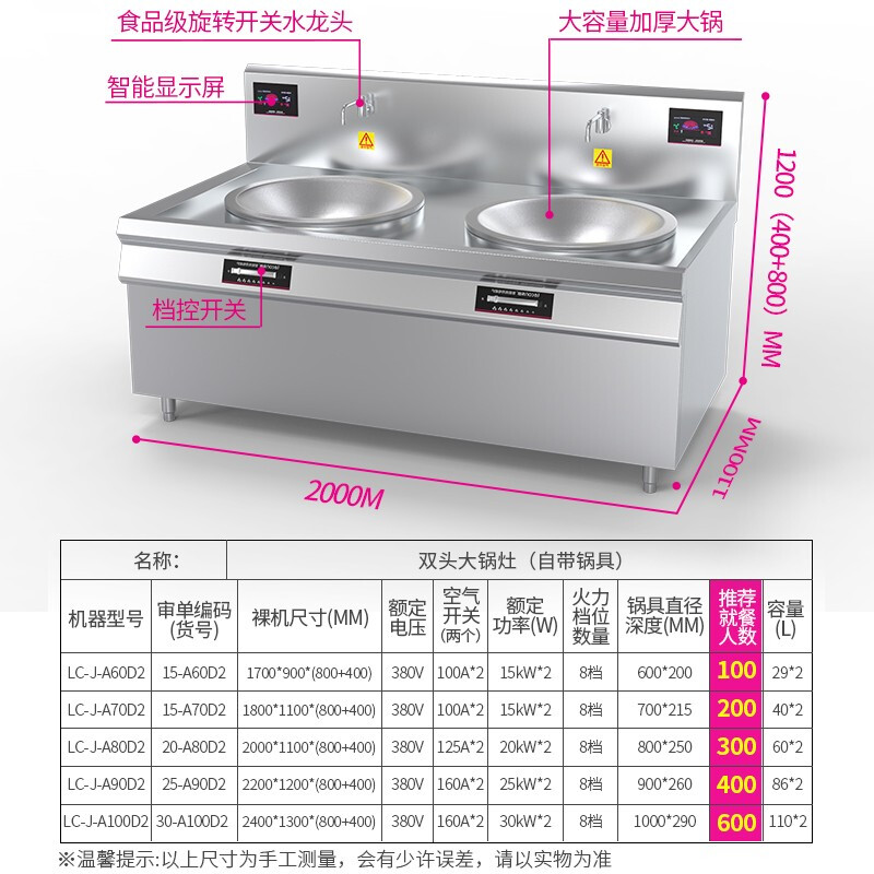 - 乐创(lecon)商用电磁双头大锅灶 锅径800 20KW*2大功率 380V LC-J-A80D2