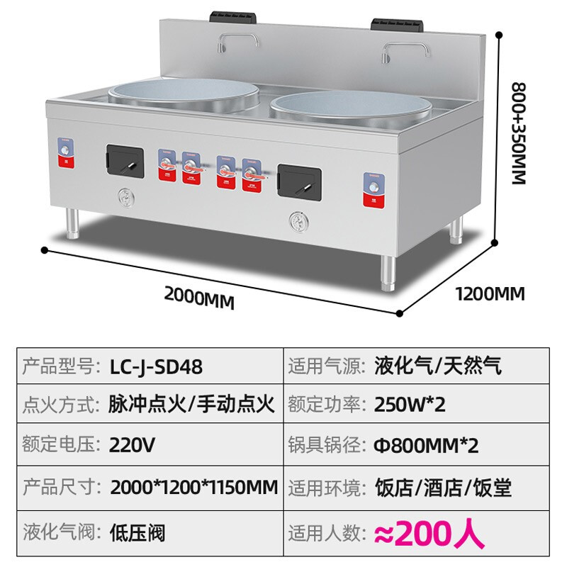 • 乐创(Lecon)商用双头大锅燃气灶 800型直径800 天然气/液化气可用 酒店厨房企业炒灶 LC-J-SD48