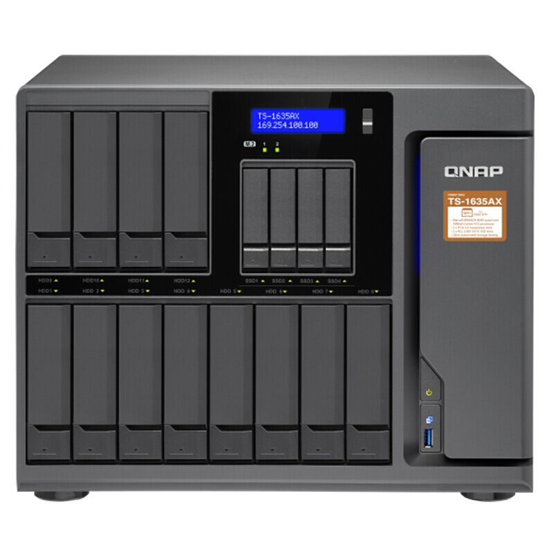 - 威联通(QNAP)TS-1635AX 16盘位企业级NAS网络存储服务器 RAID磁盘阵列 海量存储 8G 内存 192TB【企业盘16T*12】