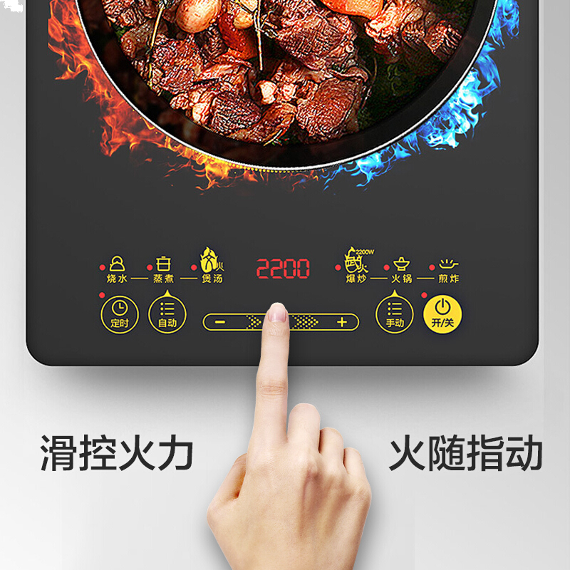 美的C21-WK2102 电磁炉 触控按键 黑晶面板 八档火力 一键爆炒 定时功能(WK2102/WH2202)