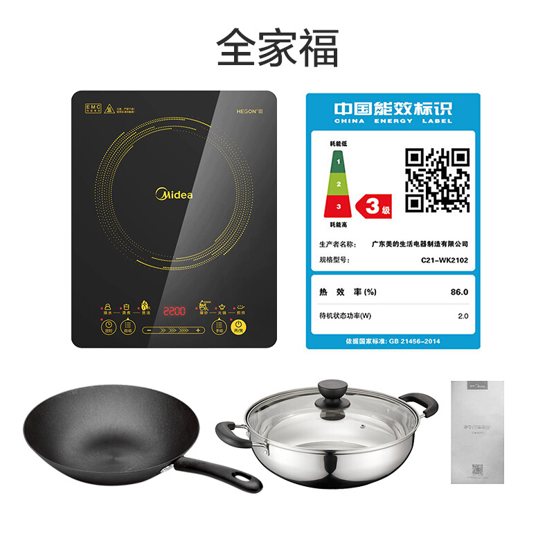 美的(Midea)电磁炉 触控按键 黑晶面板 八档火力 一键爆炒 定时功能 C21-WK2102(WK2102/WH2202)
