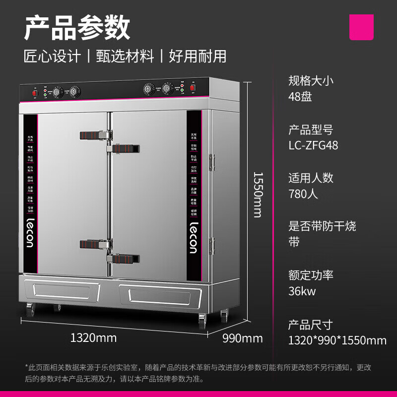 - 乐创(lecon)蒸饭柜商用 双门电热蒸饭车 智能定时款48盘380v LC-ZFG48(含入口净化过滤)