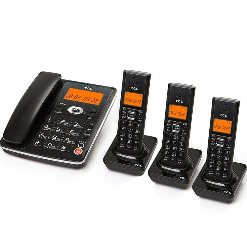 • TCL子母机电话 D61 家用固定座机 数字无绳电话机中文 来电显示清晰免提 办公无线固话 黑色一拖三
