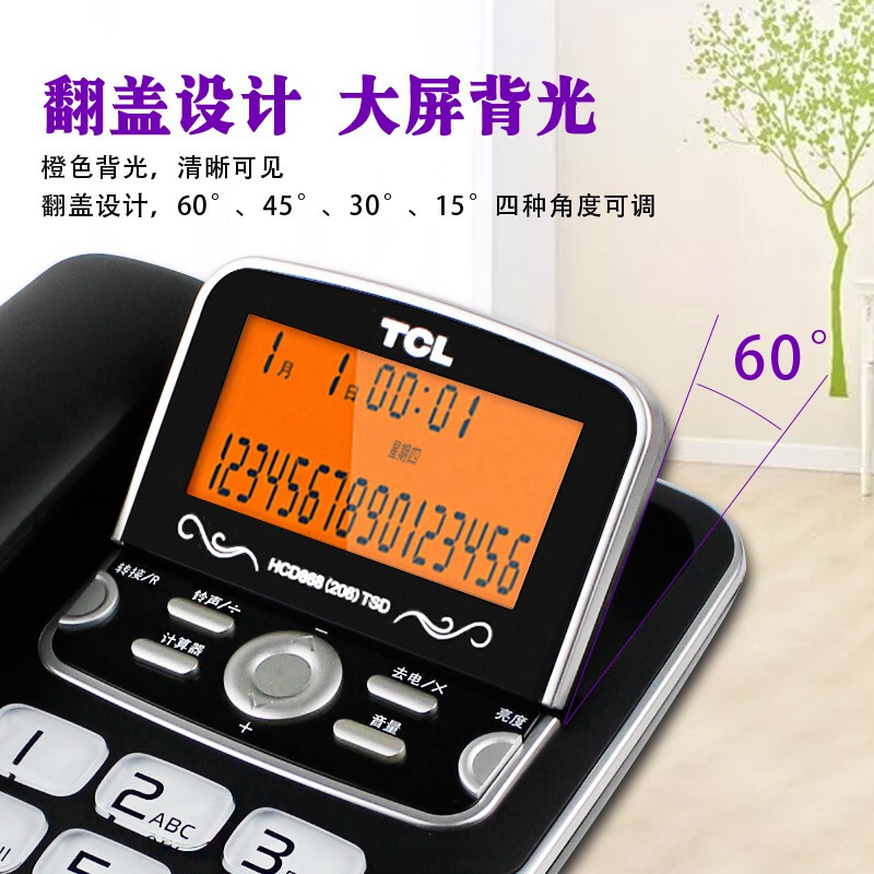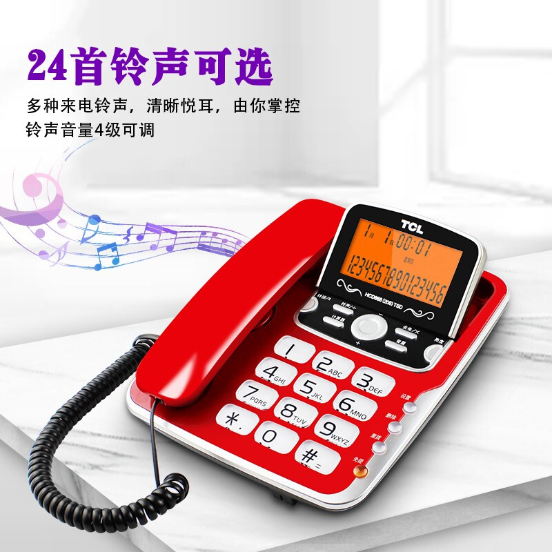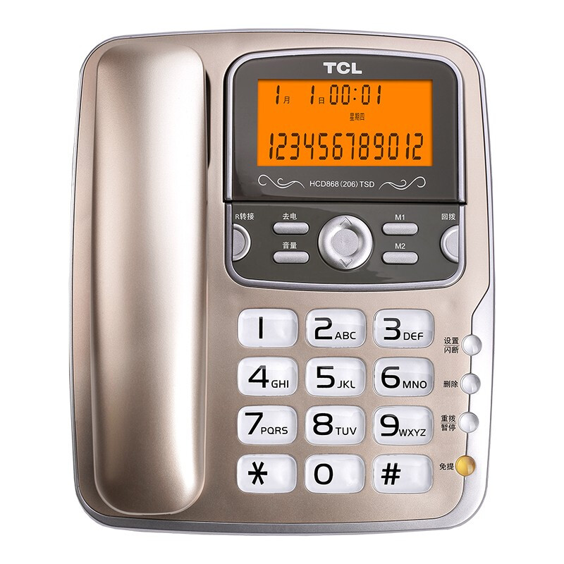 • TCL 电话机座机 固定电话 办公家用 双接口 屏幕可抬 大按键 HCD868(206)TSD (香槟金)
