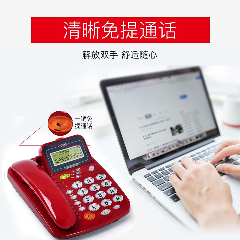 • TCL电话机 HCD37 家用固定座机 免电池有绳电话 免提时尚小翻盖办公固话 17B红色
