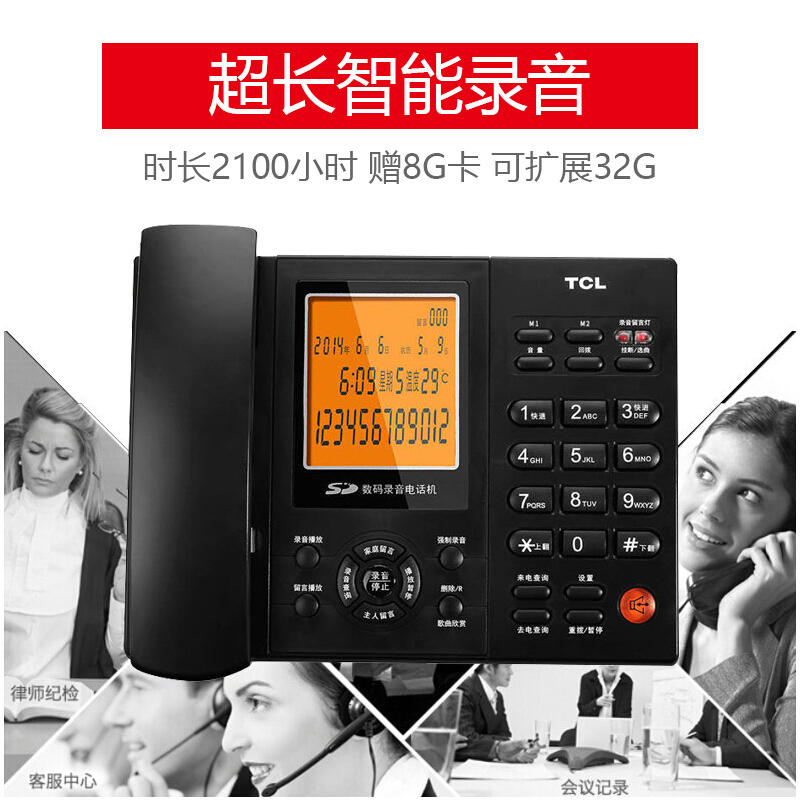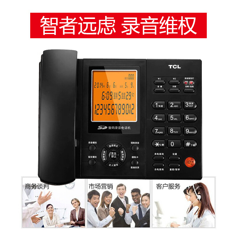 • TCL电话机座机HCD88 录音固话电话 办公商务 SD卡存储 支持耳机 录音应答 黑色
