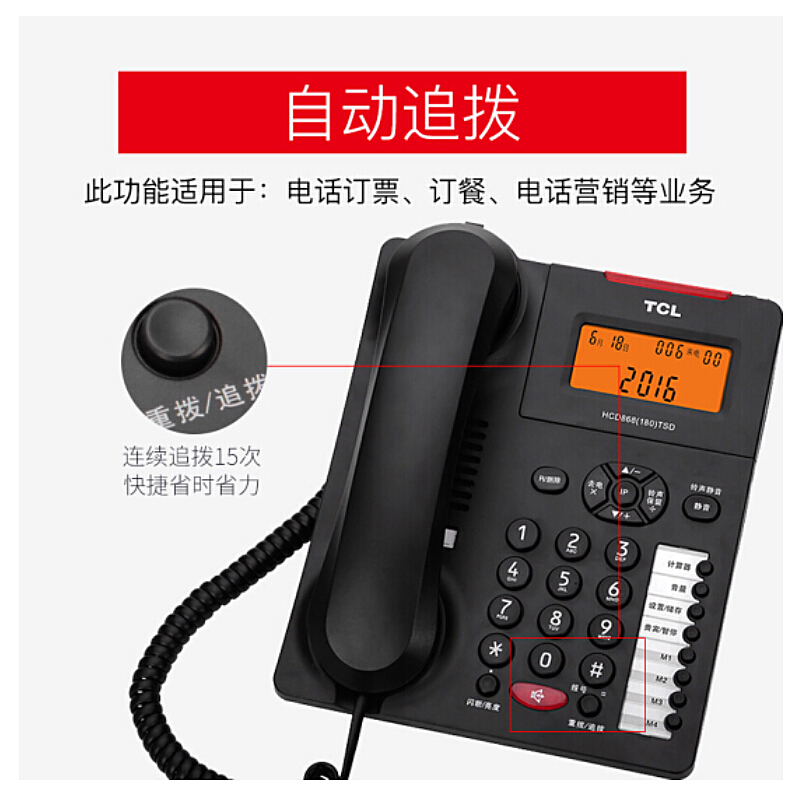 • TCL电话机 HCD(180) 座机固定电话机 挂墙 计算器 来电报号 大音量来电显示电话座机 黑色