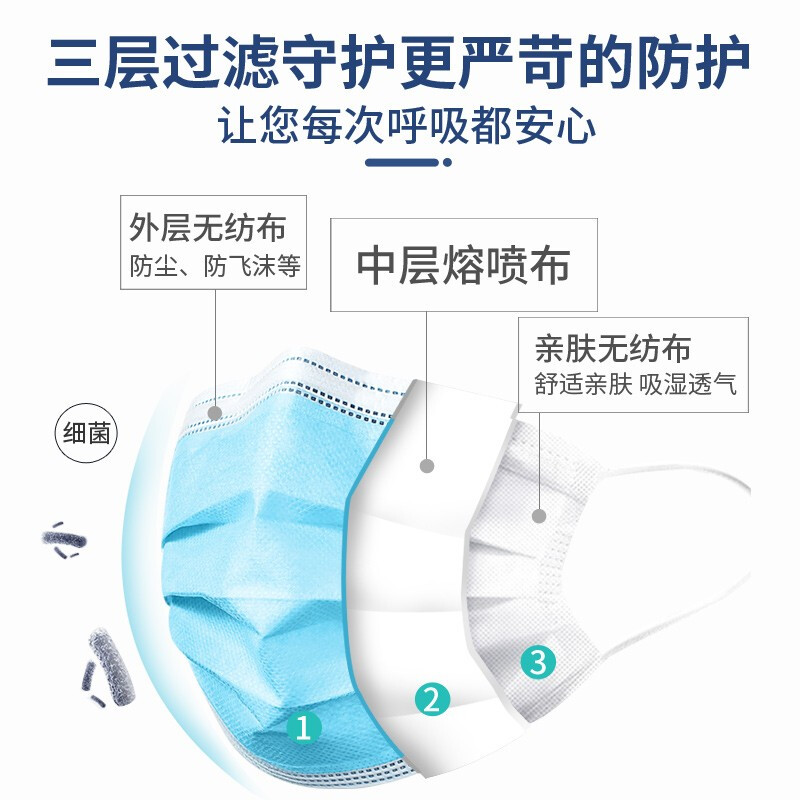 • 氧精灵一次性无菌医用外科口罩透气轻薄3层成人款100只