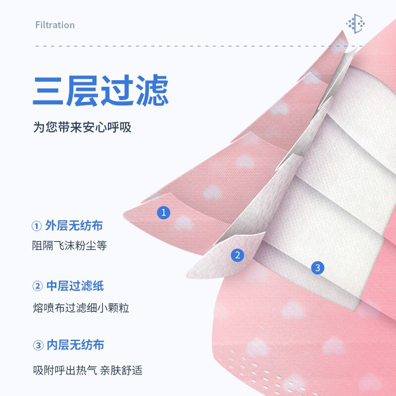 • 袋鼠医生 医用外科口罩成人三层印花一次性口罩单独包装 粉爱心独立装 50支/盒