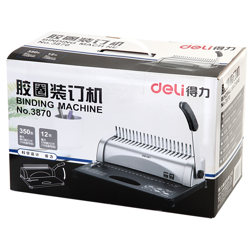 得力3870 省力型胶圈/夹条装订机 21孔文件打孔机