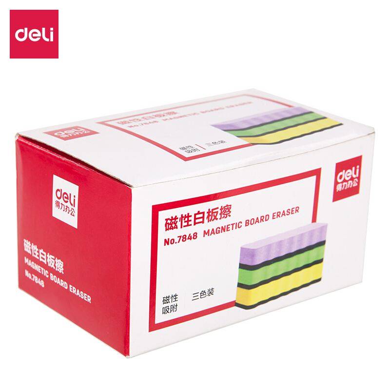 • 得力7848 磁性白板擦 背面可吸附式黑板擦 三个装/三色白板配件 白板笔 可用