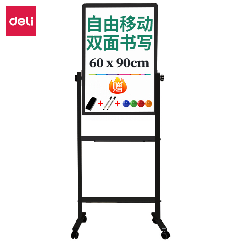 • 得力(deli)90*60cmH型支架式可移动可翻转白板双面磁性办公会议写字板黑板7881