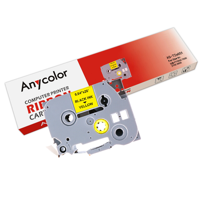• 欣彩TZe-651标签机色带 AS-TZe651 24mm黄底黑字适用兄弟 PT1650 7600 2700 3600