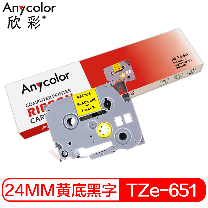 欣彩 TZe-651标签机色带 AS-TZe651 24mm黄底黑字 适用兄弟 PT1650 7600 2700 3600