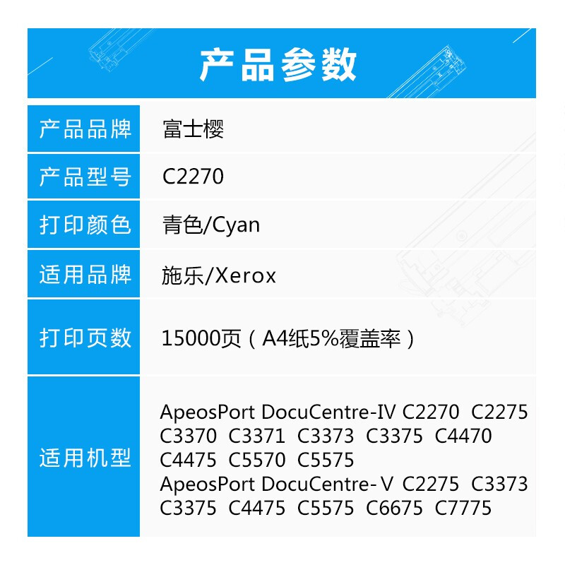 - 富士樱 C2270 C 青色墨粉盒 适用富士施乐C2270 C3373 3375 5575 5570 C4475 CT201830 墨粉(四代五代通用)