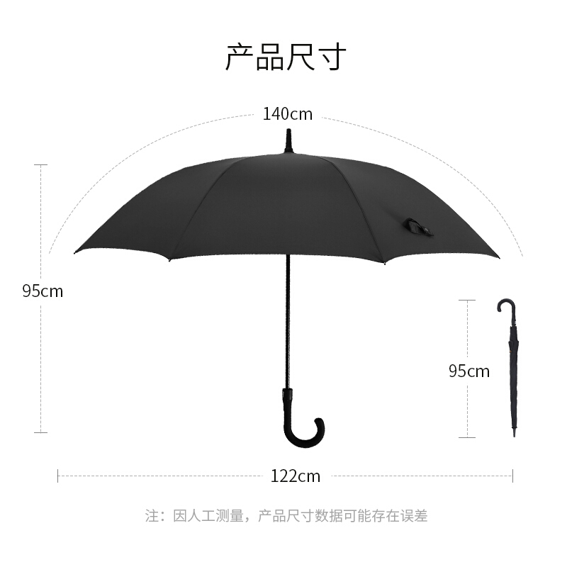 美度(MAYDU)自动开男士商务晴雨伞 加大防风弯勾式长柄伞 M1126黑色