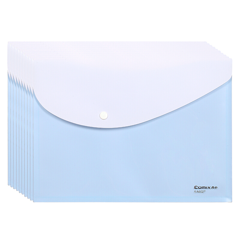 齐心(Comix)10只A4透明按扣文件袋 资料收纳袋 塑料防水档案袋 EA6027 蓝