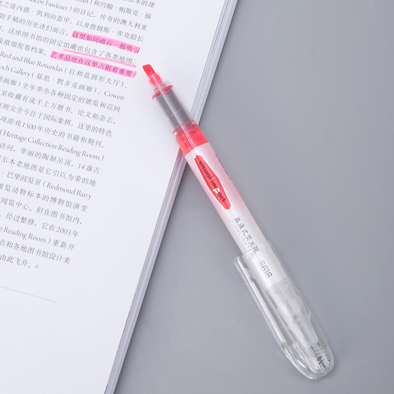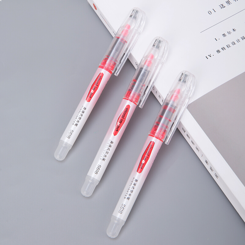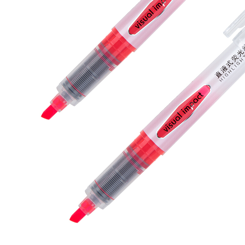 得力S618 红色 直液荧光笔 重点标记 手帐可用水性记号笔 大包装 36支装