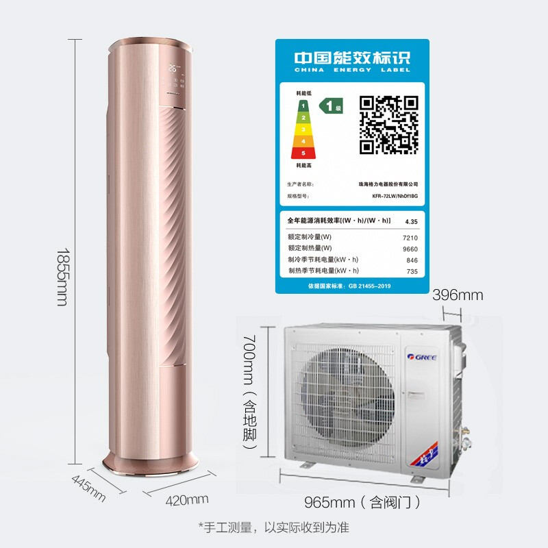 格力(GREE)3匹 云铂 新一级能效 变频 自清洁 智能 客厅圆柱空调立式柜机(KFR-72LW/NhDf1BG)