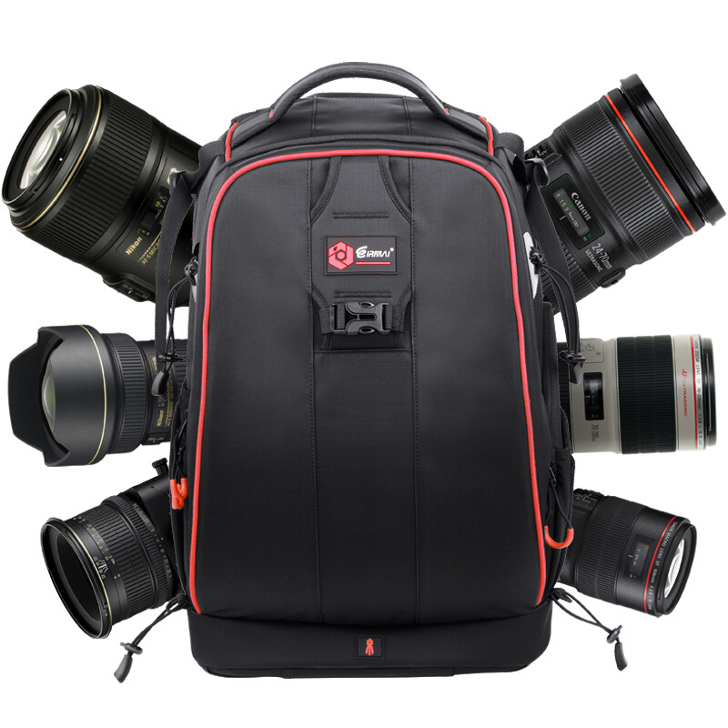 • 锐玛D2330升级 开拓者系列大号 单反相机双肩包 佳能尼康摄影包 防水防震相机包 红边