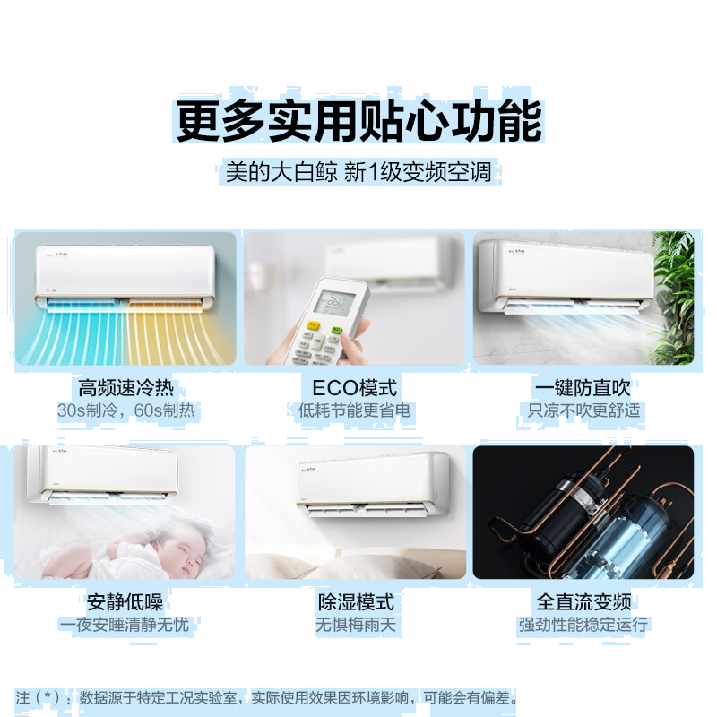 • 美的KFR-35GW/N8JDA1 新一级 大白鲸 变频冷暖 1.5匹壁挂式空调挂机