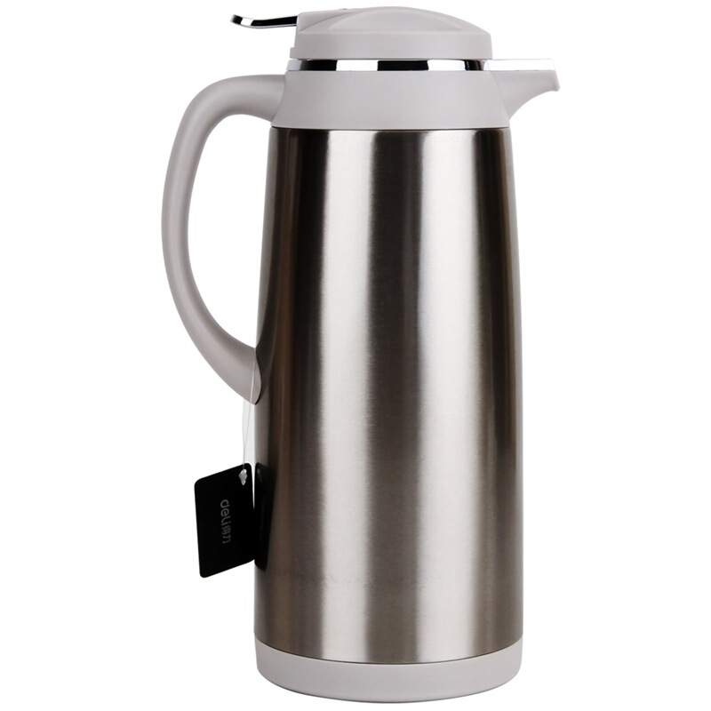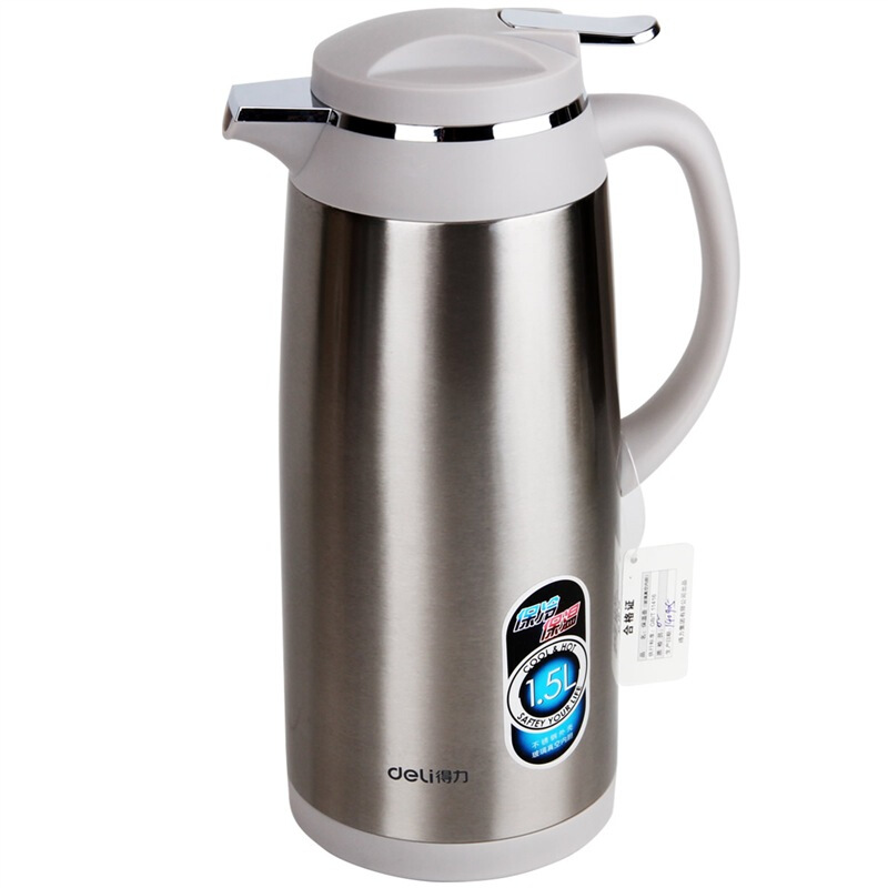 • 得力(deli)1.5L不锈钢外壳玻璃真空内胆保温壶 办公/会议/家用保温壶 本色