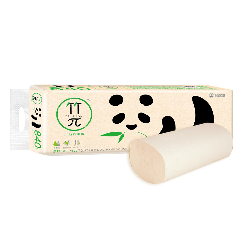 心相印 竹π竹派 无芯卷纸竹浆本色纸卫生纸70克12粒装3层